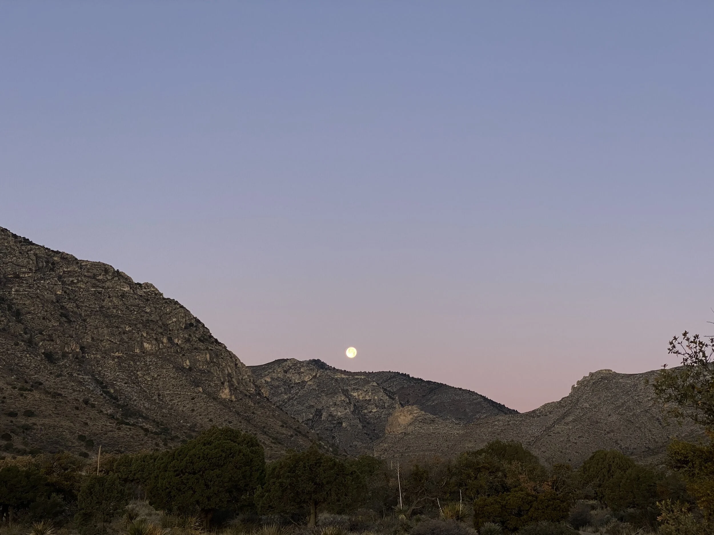 I woke up early on and drove down to the park for sunrise. I forgot it was a full moon, so that was just icing on the cake for the early morning drive. I arrived at the Pine Springs visitor’s center at about 6:45 local time. The sun was due up about 7:00 so I started the Piney Nature Walk. As the sun peeked over the distant ridge, I made my way back to the car. I have been sick since arriving in New Mexico, so I was congested and not feeling like an all-day hike so I went back up to McKittrick Canyon. The gate was open, so I made my way to the trailhead. I figured I’d walk a little and then turn around. I was the only one there and the sun was beaming down. The wind was less severe in the canyon and I was having a much more enjoyable experience. I had a puffy, a hoodie, and a t-shirt for layers and I was nice and cozy.