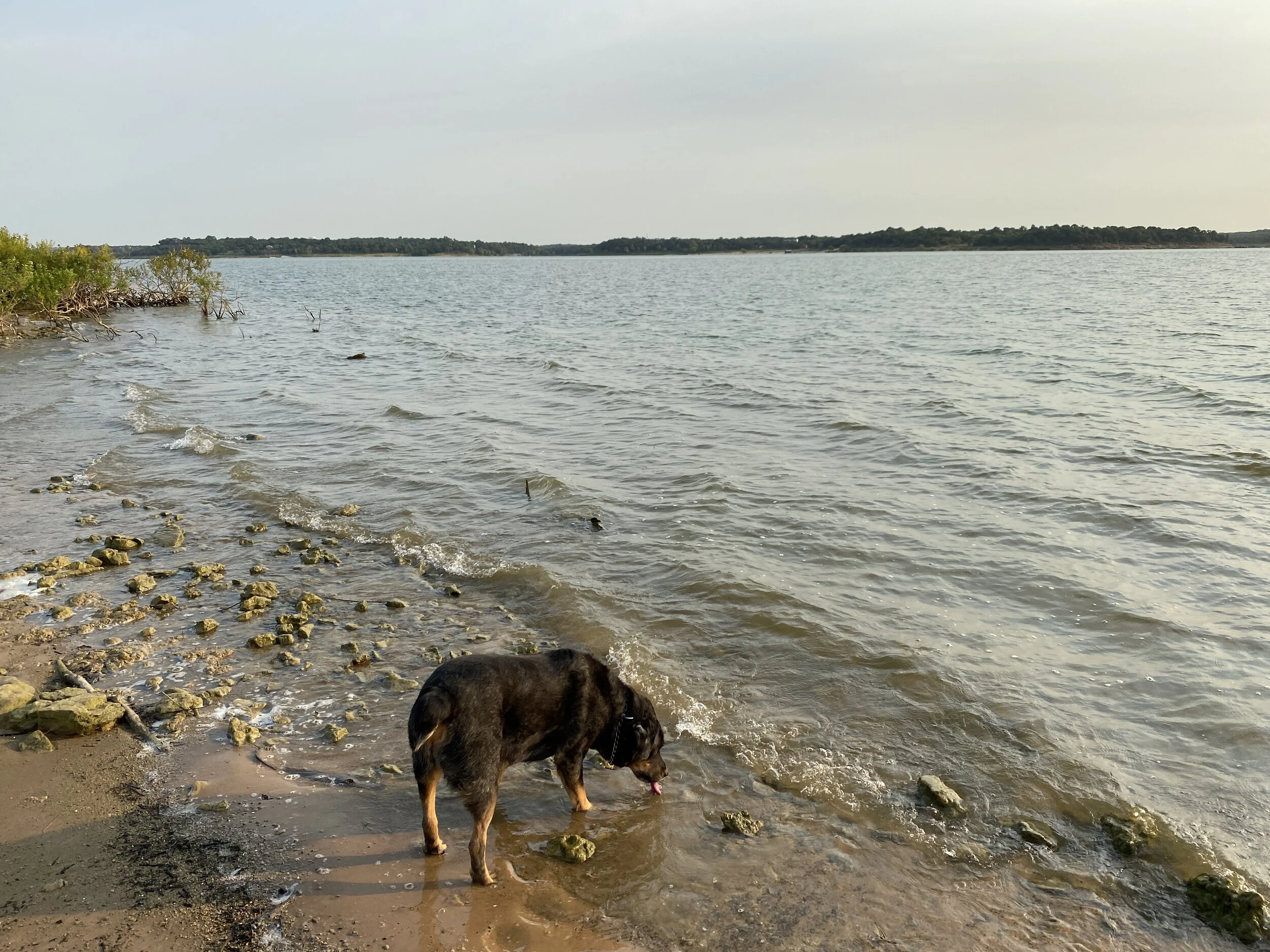 We went early and walked through the sand for about 2 miles along the lake north of Southlake, TX. It’s an okay path, with a sandy base and recent trimming. We started at the Walnut Grove area and had lake views but not much tree cover until about a mile in. There was only one other car in the parking lot, and only one other guy met in passing. The trail looks well used by humans, horses, and dogs alike. It’s worth a look if you want to hike along the lake. The early morning was nice, though hot and humid. The breeze at the parking lot was cooler than the one coming off the lake, which is something I’m not used to being from the Great Lakes.