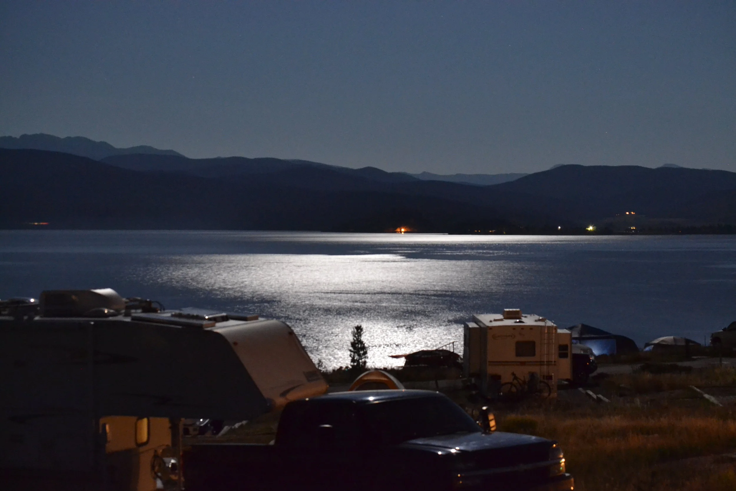 I entered the park on a sunny morning. Viewpoints were stopped at, pictures were taken. A lake was encountered in all of the mountain glory. I have a lot of trouble with the details of this trip, but I believe it was Lake Irene. The day continued on as the views leveled off and camp was set up at the Stillwater Campground on Lake Granby. A nap was had and then an adventure towards Steamboat Springs happened, with a turnaround way before getting there. The night was illuminated by a bright moon and it made for an awesome scene over the lake, which was visible from the tent. I do remember how amazing that detail was, so there is that.
