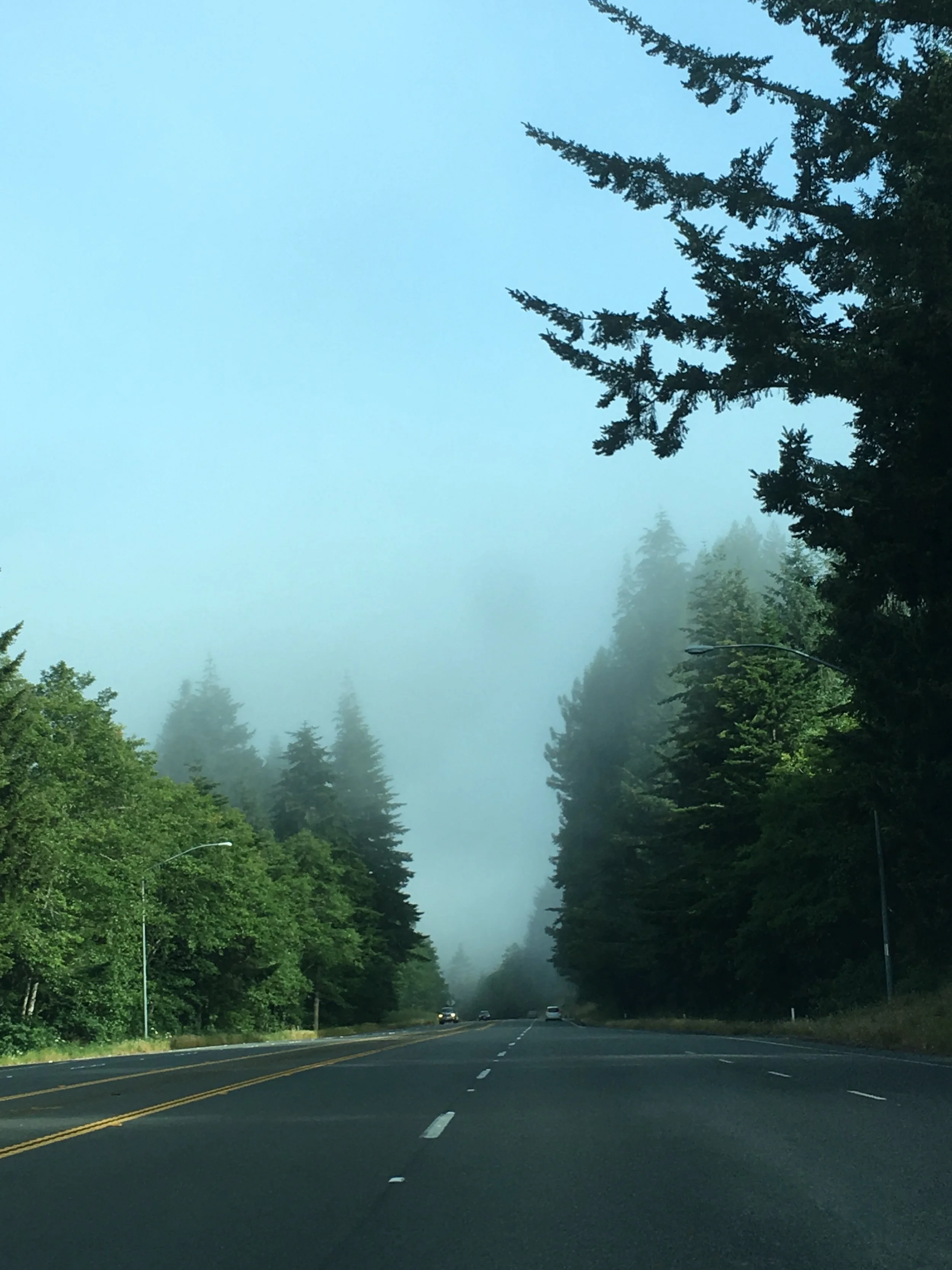 I had one more day on the peninsula, and it was suggest that I visit the Quinault region. I went on the south side, through the little tourist area and then made my way to east end around the lake. I saw beautiful trees and moss, some new trees, and a few more flowers. I decided to take a walk on the Maple Glade Rain Forest Trail. I’m so glad I did, because the water flowing through the swamp and the moss covered broadleaf (leafless) maples was stunning on that misty, foggy day. I did the small loop, already elated at the first sound only to be energized even more seeing the beautiful dots of skunk cabbage among the most brilliant green plants I’ve EVER seen in person. The pictures from that day DO do it justice, because you can see the gorgeous yellow dots and the brilliancy that is the green. What a treat.