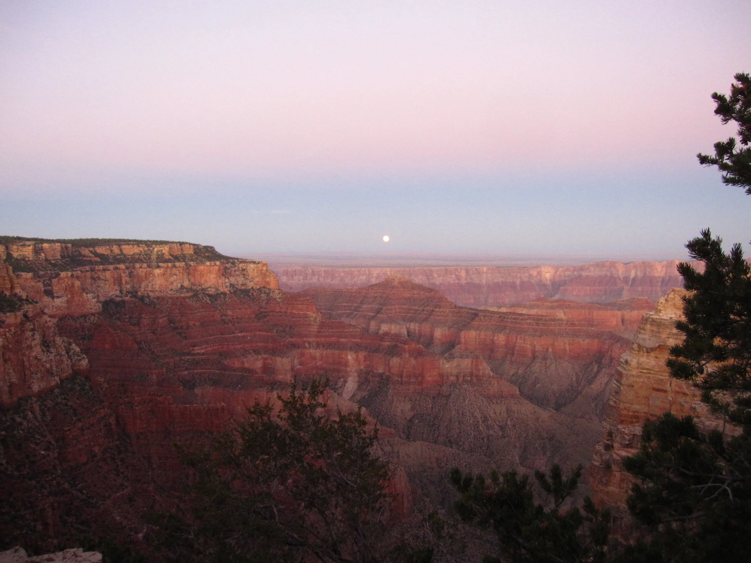 We arrived in the evening, here's the moon over the Grand Canyon.