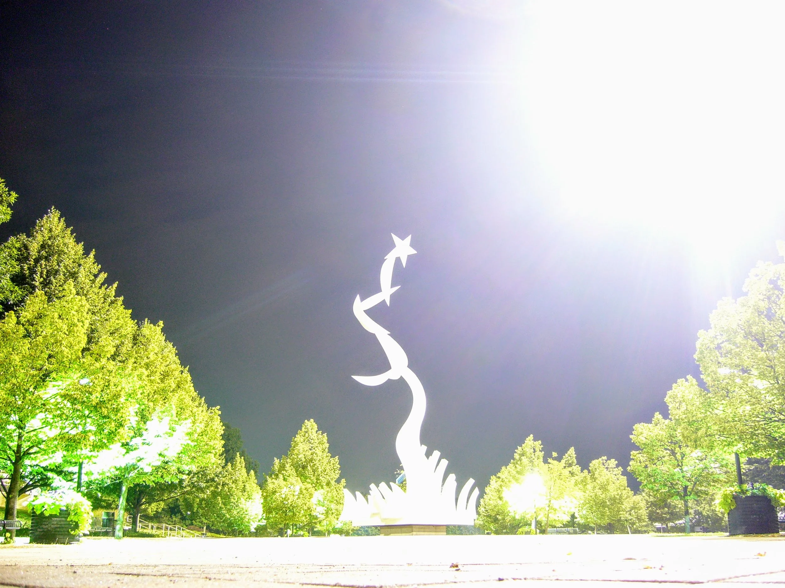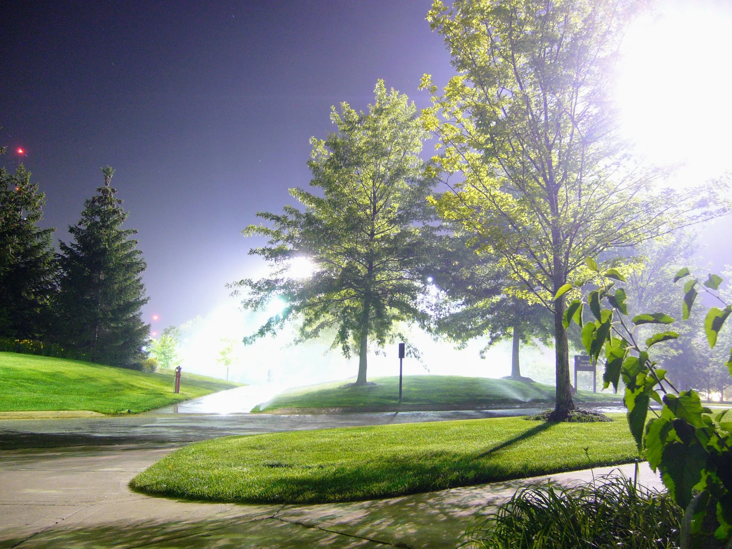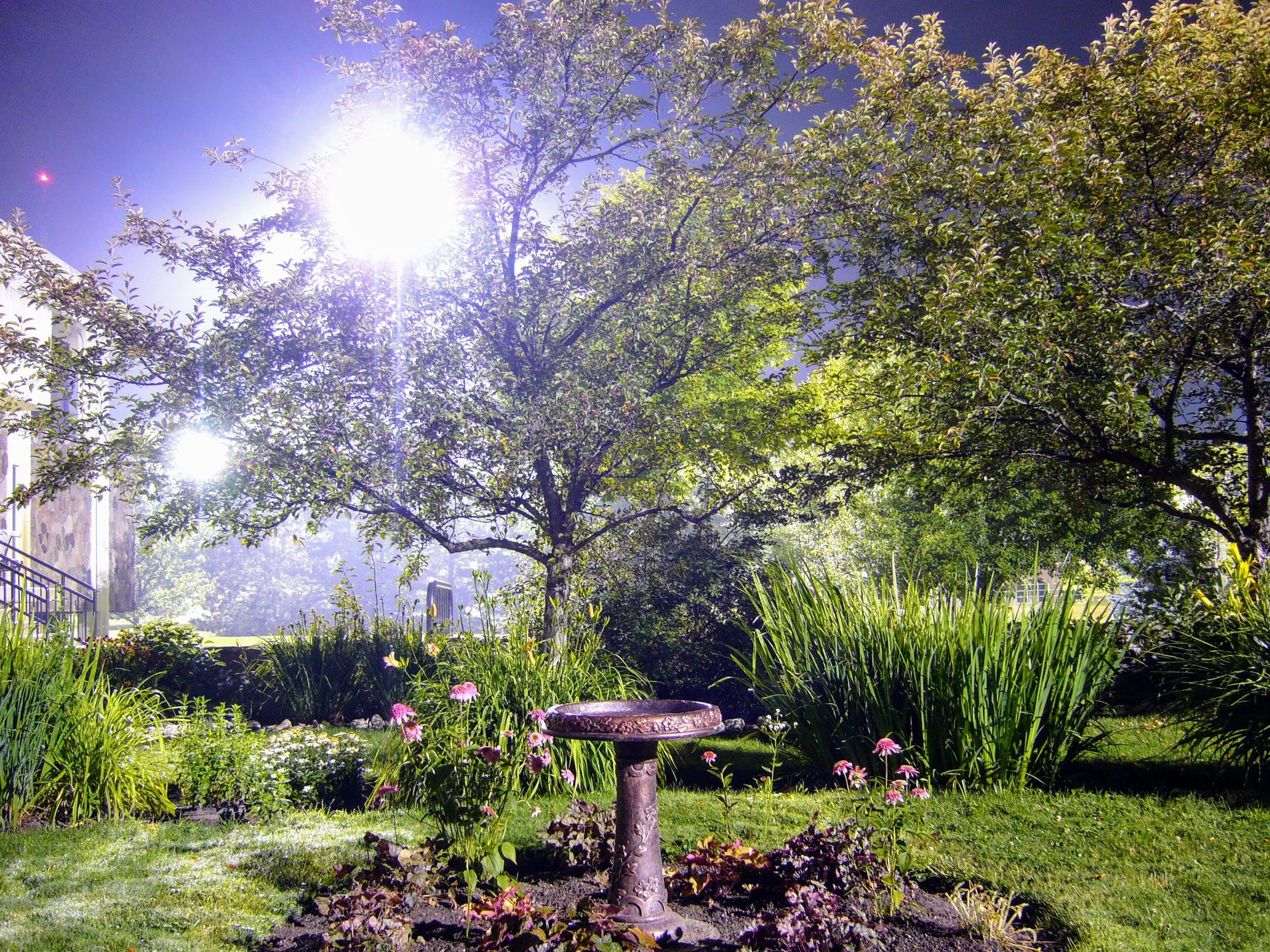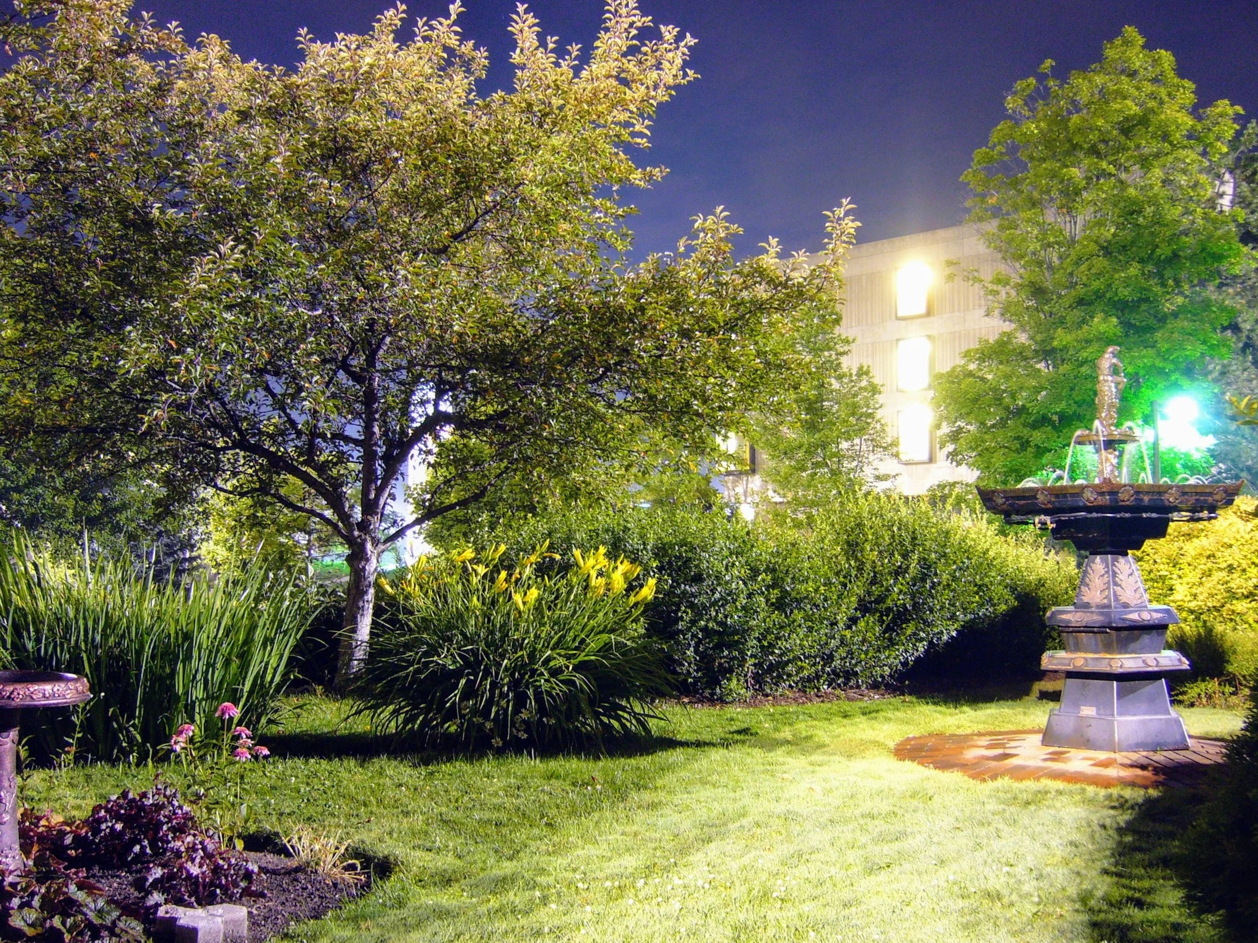 One of the gardens on campus - looking magical and alien in the overnight light